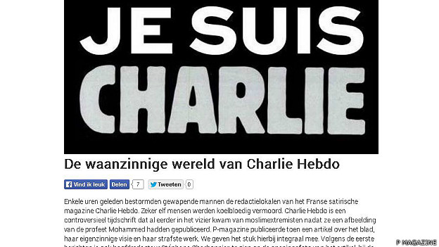 Segundo o redator-chefe, Jeroen Denaeghel, dois agentes guardam a entrada da sede da publicação, na cidade de Antuérpia. A revista publicou em 2012 uma extensa reportagem sobre a Charlie Hebdo, na qual reproduzia as polêmicas charges de Maomé que deram origem às diversas ameaças realizadas ao semanário francês.