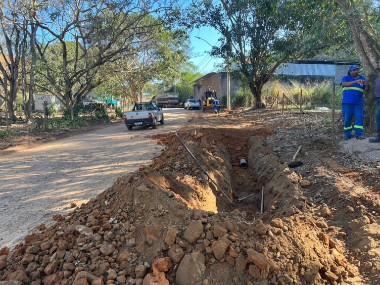 Equipe operacional do DMAES trabalha no bairro Ana Florência, construindo cerca de 120 metros de rede de esgoto. . Com tubulações PVC ocre 150mm, a