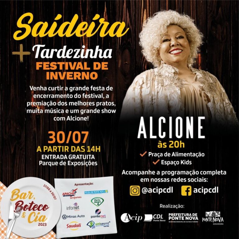 Está chegando a hora da Saideira + Tardezinha do Festival de Inverno! Dia 30 de julho, a partir das 14h, no Parque de Exposições de