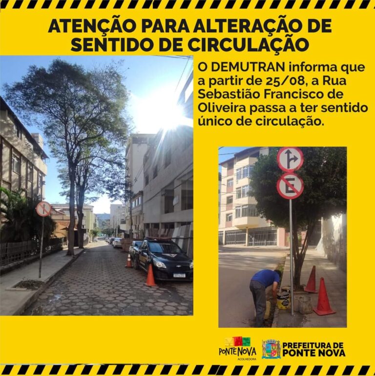 🚗 O DEMUTRAN informa, que a partir de 25/08 (sexta-feira) a rua Sebastião Francisco de Oliveira passa a ter sentido único de circulação. 🚧O sentido