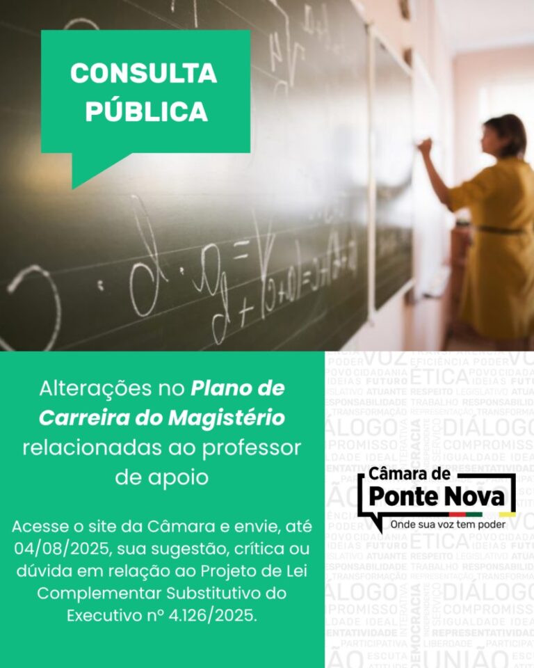 Audiência Pública debaterá proposta de alterações no Plano de Carreira do Magistério | https://www.pontenova.mg.leg.br/institucional/noticias/audiencia-publica-debatera-proposta-de-alteracoes-no-plano-de-carreira-do-magisterio ✅ Projeto que destina mais de R$ 30 mil ao Grupo