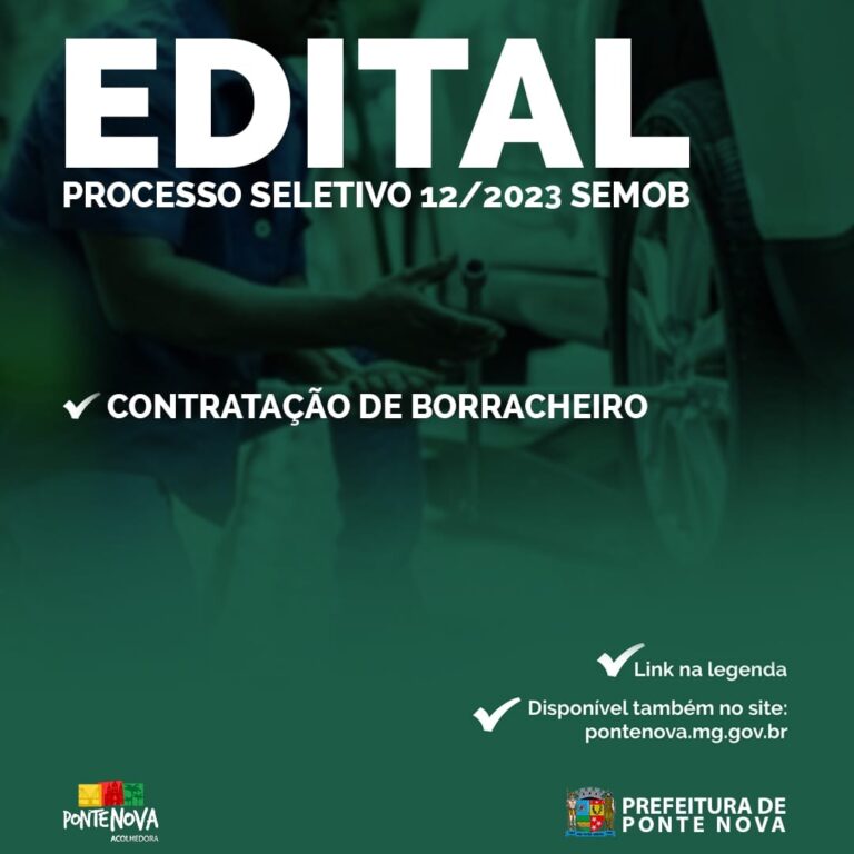 O Município de Ponte Nova – MG, através da Secretaria Municipal de Obras, torna público que estarão abertas, do dia 12/04/2023 a 18/04/2023, as inscrições