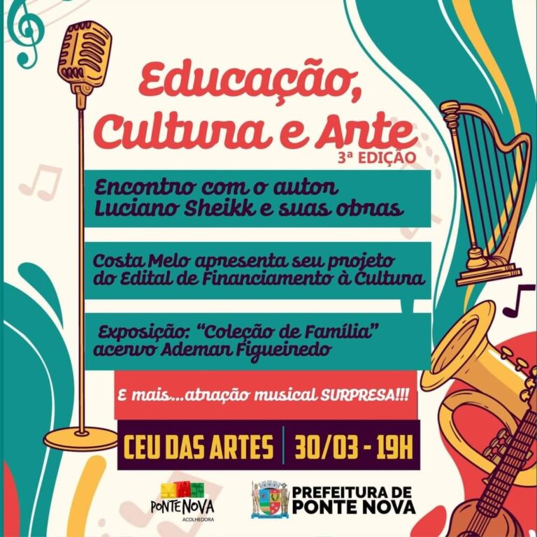 Mais uma edição do nosso EDUCAÇÃO, CULTURA E ARTE. Dia 30/03, a partir das 19h, venha ao CEU das Artes respirar cultura. Nosso projeto lançado