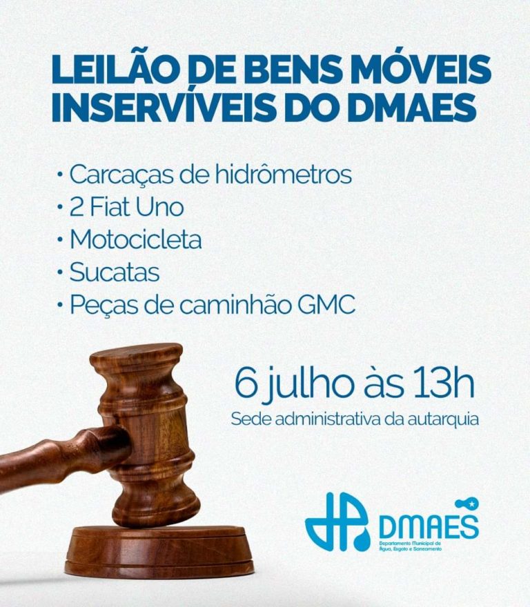 • Carcaças de hidrômetros • 2 Fiat Uno • Motocicleta • Sucatas • Peças de caminhão GMC . Acontecerá no dia 6 de julho às