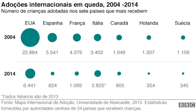 Devido a suspensões por tempo indefinido em vários dos principais países de origem dessas crianças, as adoções internacionais praticamente pararam.