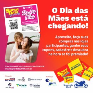 Lembramos que a Super Data Premiada pode te surpreender com um vale-compras de R$ 200! Faça suas compras em uma das lojas participantes da promoção