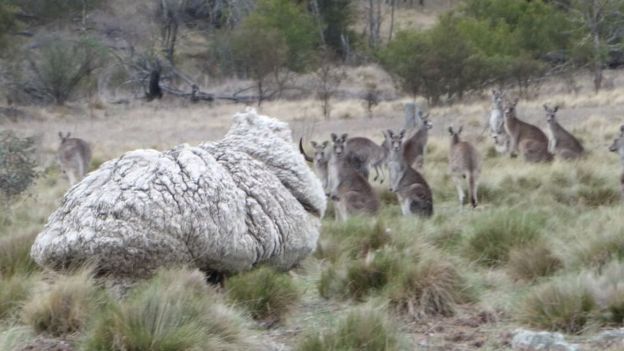 Foram necessários cinco pessoas para tosar um carneiro “gigante” encontrado desgarrado perto da capital, Canberra. Por ter ficado muitos anos desgarrado, sem ser tosquiado, sua lã cresceu até cinco vezes o tamanho normal.