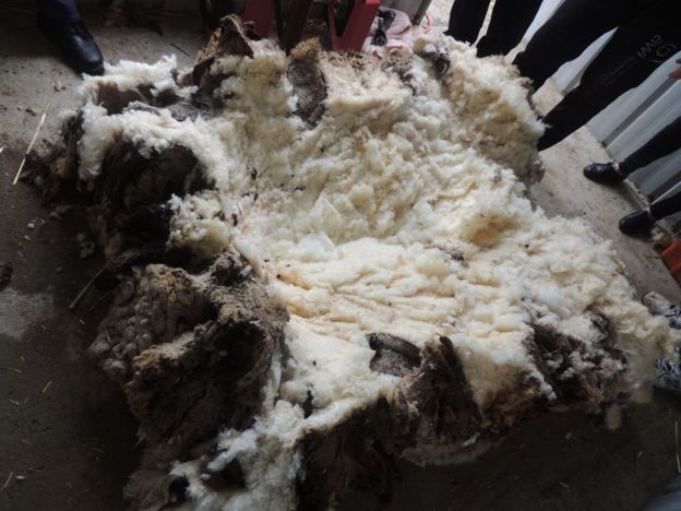 O monte de lã foi inicialmente pesado em mais de 42 quilos, mas em seguida foi reduzido para 40 quilos, descontando o peso da sacola, de acordo com a organização que luta pelos direitos dos animais RSPCA.